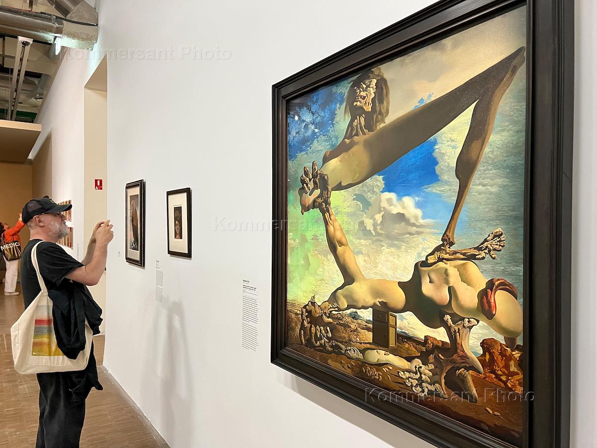 Выставка "Сюрреализм с начала и всегда" (Le Surréalisme d'abord et toujours) в парижском Центре Помпиду к 100-летию сюрреализма. Посетители на выставке.