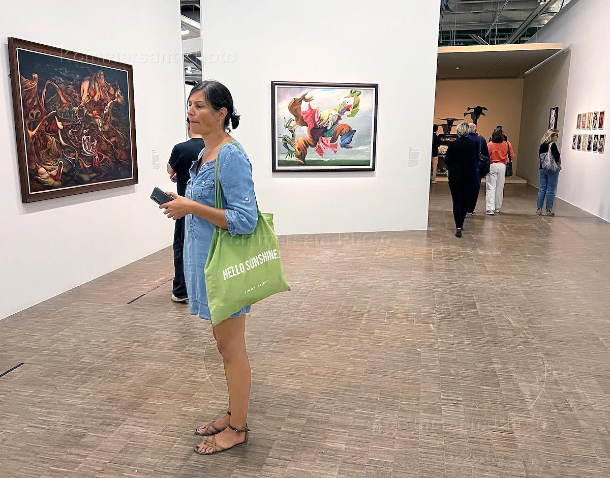 Выставка "Сюрреализм с начала и всегда" (Le Surréalisme d'abord et toujours) в парижском Центре Помпиду к 100-летию сюрреализма. Посетители на выставке.
