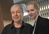 Фестиваль актуального российского кино "Маяк". Церемония открытия в киноконцертном зале "Метрополь Гранд Отель Геленджик". Продюсер, актер Александр Робак (слева) и актриса Юлия Марченко на церемонии.