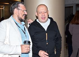 Фестиваль актуального российского кино "Маяк" в Геленджике. Показ конкурсного фильма "Агния". Продюсер Евгений Субочев (слева) и режиссер Алексей Герман Алексей-младший (справа) перед началом показа.