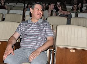 Фестиваль актуального российского кино "Маяк" в Геленджике. Показ конкурсного фильма "Белый пароход". Член жюри, кинооператор Алишер Хамидходжаев перед началом показа.