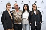 Фестиваль актуального российского кино "Маяк" в Геленджике. Показ конкурсного фильма "Агния". Слева направо: актриса Евгения Громова, программный директор фестиваля актуального российского кино "Маяк" Стас Тыркин, продюсер Сабина Еремеева и режиссер фильма Павла Стратулат перед началом показа.