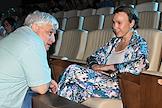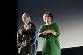 Фестиваль актуального российского кино "Маяк" в Геленджике. Показ конкурсного фильма "Белый пароход". Слева направо, участники съемочной группы фильма: режиссер Инга Шепелева, актриса Элла Соколова и продюсер Жан Просянов перед началом показа.