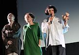 Фестиваль актуального российского кино "Маяк" в Геленджике. Показ конкурсного фильма "Белый пароход". Слева направо, участники съемочной группы фильма: продюсер Жан Просянов, актриса Элла Соколова и режиссер Инга Шепелева перед началом показа.