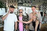 Фестиваль актуального российского кино "Маяк" в Геленджике. Исполнительный директор Фонда развития современного кинематографа "Кинопрайм" Антон Малышев (слева), программный директор фестиваля актуального российского кино "Маяк" Стас Тыркин (в центре) и кинокритик, журналист Андрей Щиголев (второй справа) на кинофестивале.