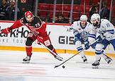 Континентальная Хоккейная Лига (КХЛ). Матч между командами "Витязь" (Московская область, Балашиха) - "Динамо" (Москва) в Ледовом Дворце "Арена "Балашиха" им. Ю.Е. Ляпкина. Игрок команды "Динамо" Макс Комтуа во время матча.