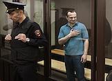 Оглашение приговора бывшему руководителю следственного отдела СКР по Тверскому району Москвы Марату Тамбиеву, обвиняемому в получении взятки, в Балашихинском городском суде Московской области. Жанровая фотография.