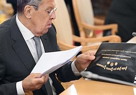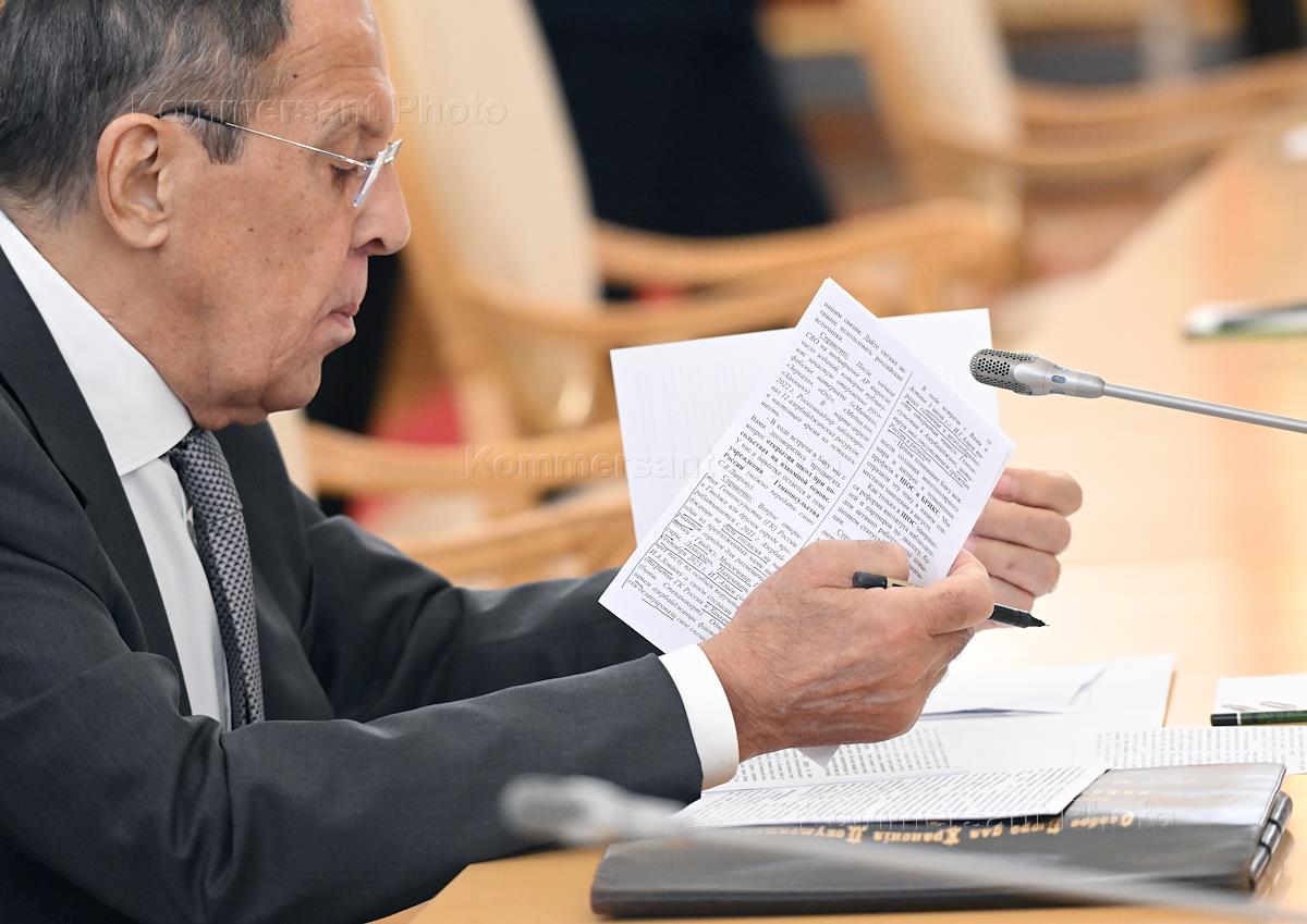 Саммит лидеров стран СНГ в Большом Кремлевском дворце. Министр иностранных дел России Сергей Лавров перед началом саммита.