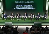 Российский экологический форум (РЭФ) на площадке СберУниверститета в деревне Аносино. Пленарное заседание "Пять лет будущего: фокус на экологию и "зеленые" инвестиции". Слева направо: президент Ассоциации "Глобальная энергия" Сергей Брилев, заместитель министра строительства и жилищно-коммунального хозяйства России Алексей Ересько, советник президента России, специальный представитель президента России по вопросам климата Руслан Эдельгериев, генеральный директор ППК "РЭО", администратор федерального проекта "Комплексная система обращения с твердыми коммунальными отходами" Денис Буцаев, председатель ПАО "Промсвязьбанк" Петр Фрадков, президент торгово-промышленной палаты (ТПП) России Сергей Катырин, заместитель председателя правительства России Дмитрий Патрушев и временный поверенный в делах Шри-Ланки в Москве Пакир Мохидин Амза во время заседания.