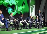 Российский экологический форум (РЭФ) на площадке СберУниверститета в деревне Аносино. Пленарное заседание "Пять лет будущего: фокус на экологию и "зеленые" инвестиции". Губернатор Тульской области Дмитрий Миляев (в центре) во время заседания.