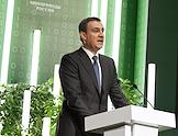 Российский экологический форум (РЭФ) на площадке СберУниверститета в деревне Аносино. Пленарное заседание "Пять лет будущего: фокус на экологию и "зеленые" инвестиции". Заместитель председателя правительства России Дмитрий Патрушев во время заседания.