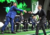 Российский экологический форум (РЭФ) на площадке СберУниверститета в деревне Аносино. Пленарное заседание "Пять лет будущего: фокус на экологию и "зеленые" инвестиции". Президент Ассоциации "Глобальная энергия" Сергей Брилев (слева) и заместитель председателя правительства России Дмитрий Патрушев (справа) во время заседания.
