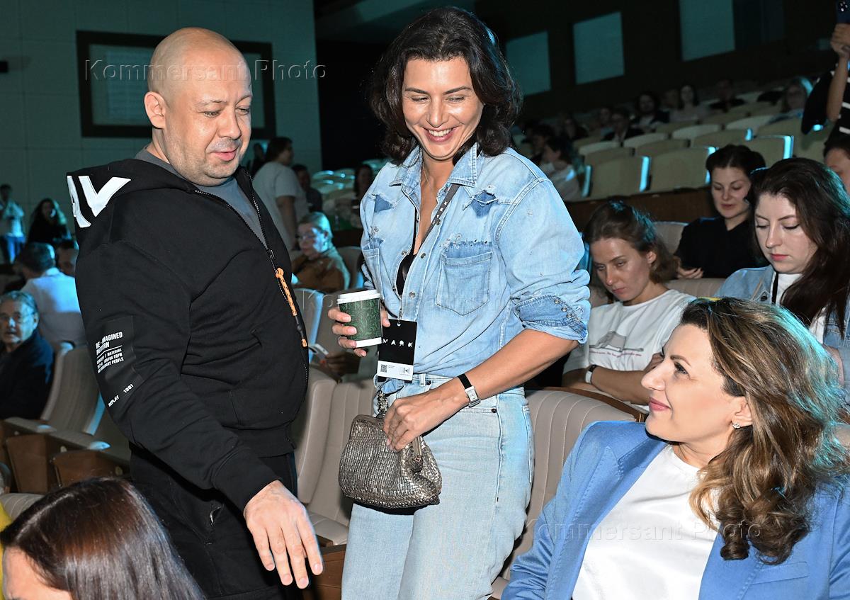 Фестиваль актуального российского кино "Маяк". Показ фильма режиссеров Владимира Мункуева, Максима Арбугаева "Кончится лето". Слева направо: режиссер Владимир Мункуев, продюсер Анна Тихонова и продюсер, генеральный продюсер онлайн-кинотеатра Kion Игорь Мишин перед началом показа.