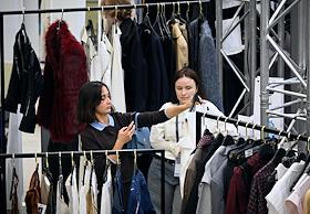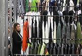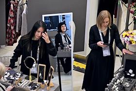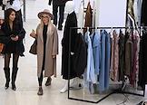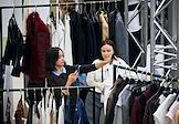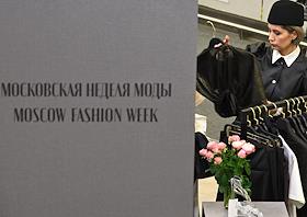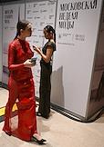 Третья Московская неделя моды в ЦВЗ "Манеж". Жанровая фотография. Зрители показов выбирают одежду в шоу-руме.