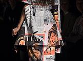 Третья Московская неделя моды в ЦВЗ "Манеж". Жанровая фотография. Девушка зритель перед началом показа.