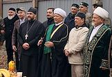 Торжественная церемония закладки первого камня в основание Мусульманского комплекса с мечетью в честь героев специальной военной операции в Екатеринбурге. Муфтий Москвы и Центрального региона, представитель Центрального духовного управления мусульман (ЦДУМ) Альбир Крганов (третий справа) во время церемонии.