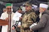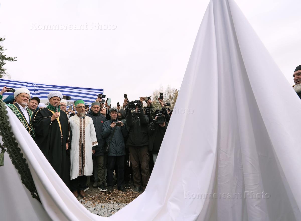 Торжественная церемония закладки первого камня в основание Мусульманского комплекса с мечетью в честь героев специальной военной операции в Екатеринбурге. Муфтий Москвы и Центрального региона, представитель Центрального духовного управления мусульман (ЦДУМ) Альбир Крганов (второй слева) во время церемонии.