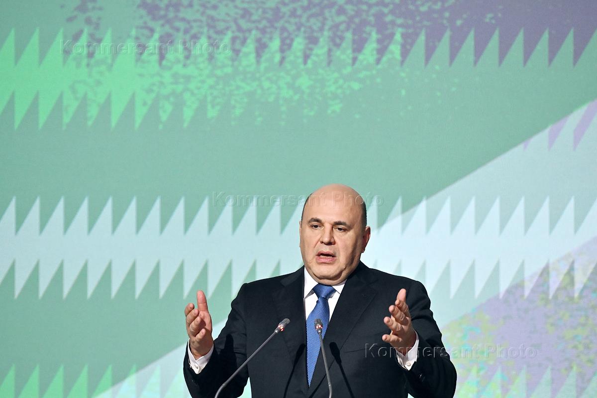Российская агропромышленная выставка "Золотая осень", приуроченная ко Дню работника сельского хозяйства и перерабатывающей промышленности в "Тимирязев центр". Председатель правительства России Михаил Мишустин во время пленарного заседания "Российский агропром – 2030: пути достижения технологического лидерства" в рамках выставки.