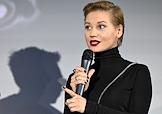 Фестиваль актуального российского кино "Маяк". Показ фильма режиссера Ильи Хотиненко "Кинопленка №8". Актриса Кристина Асмус перед началом показа.
