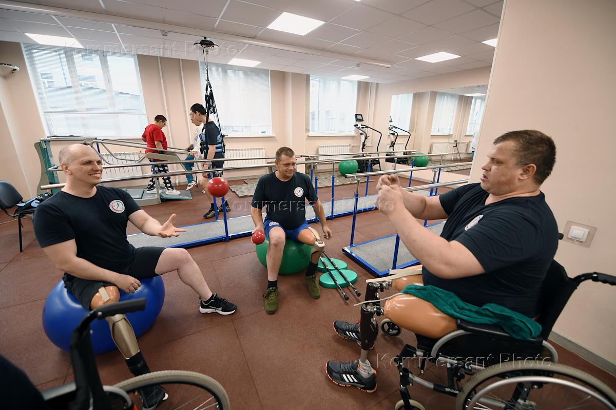 Донецкий протезно-ортопедический центр (ДПОЦ). Жанровая фотография. Пациенты центра во время прохождения программы реабилитации.