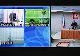 Оглашение приговора генеральному директору ОАО "Пермский телефонный завод "Телта" Алексею Высокову, главному бухгалтеру предприятия Елене Гришиной, обвиняемых в даче взятки и начальнику первого отдела Главного управления связи Министерства обороны России Сергею Слюсарю, обвиняемого в получении взятки, в Солнечногорском гарнизонном военном суде. Генеральный директор ОАО "Пермский телефонный завод "Телта" Алексей Высоков (на экране, слева) и главный бухгалтер предприятия Елена Гришина (на экране, в центре) во время заседания суда.