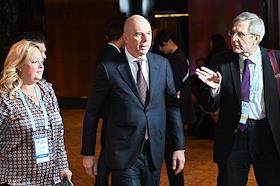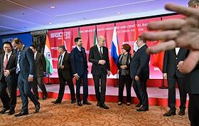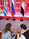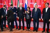Заключительная встреча министров финансов и управляющих центральными банками стран БРИКС с участием представителей новых стран-членов объединения в "Лотте Отеле". Жанровая фотография.