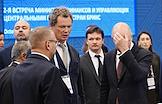 Заключительная встреча министров финансов и управляющих центральными банками стран БРИКС с участием представителей новых стран-членов объединения в "Лотте Отеле". Участники во время встречи.