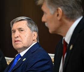 Рабочая поездка президента России Владимира Путина в Туркменистан. Встреча президента России Владимира Путина с президентом Ирана Масудом Пезешкианом. Помощник президента России Юрий Ушаков во время встречи.