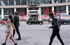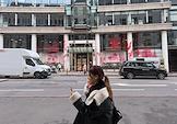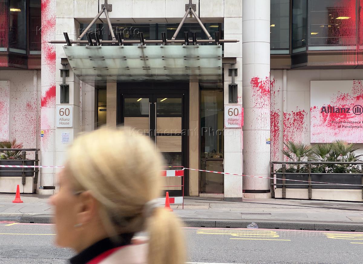 Виды Лондона. Жанровая фотография. Испачканное краской здание во время акции протеста пропалестинскими активистами.