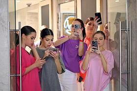 Celebrating the birthday of the music channel "MUZ-TV" at the State Kremlin Palace. Singer Zara (center) before the start of the festive concert.