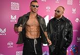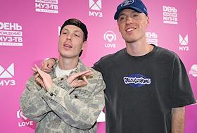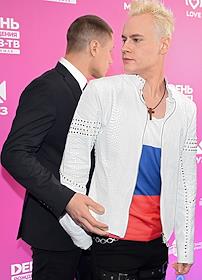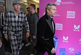 Celebrating the birthday of the music channel "MUZ-TV" at the State Kremlin Palace. Singers Oleg Miami (Oleg Krivikov) (left) and Lesha Svik (Alexey Norkitovich) (right) before the start of the festive concert.