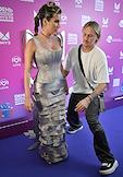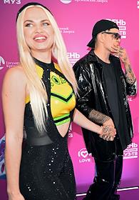 Celebrating the birthday of the music channel "MUZ-TV" at the State Kremlin Palace. Participants of the RASA group Viktor Popleyev (right) and Daria Sheiko (left) before the start of the festive concert.