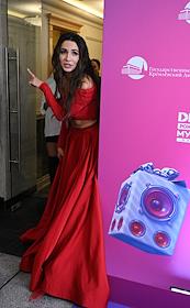 Celebrating the birthday of the music channel "MUZ-TV" at the State Kremlin Palace. Lead singer of the group Artik & Asti Seville Velieva before the start of the festive concert.