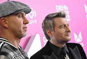 Celebrating the birthday of the music channel "MUZ-TV" at the State Kremlin Palace. Participants of the NLO group Evgeny Shamov (left) and Stepan Rudnitsky (right) before the start of the festive concert.