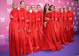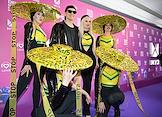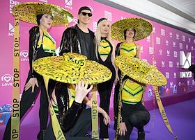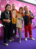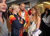 Celebrating the birthday of the music channel "MUZ-TV" at the State Kremlin Palace. Participants of the RASA group Viktor Popleyev (second from left) and Daria Sheiko (second from right) before the start of the festive concert.