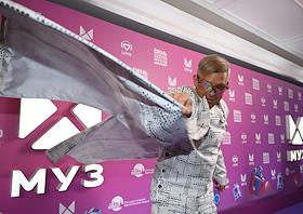 Celebrating the birthday of the music channel "MUZ-TV" at the State Kremlin Palace. Singer SHAMAN (Yaroslav Dronov) before the start of the festive concert.