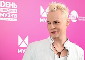 Celebrating the birthday of the music channel "MUZ-TV" at the State Kremlin Palace. Singer Mitya Fomin before the start of the festive concert.