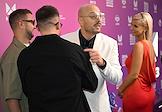 Celebrating the birthday of the music channel "MUZ-TV" at the State Kremlin Palace. From left to right: members of the group Galibri & Mavik Alexander Fomenkov (Mavik), Evgeny Trukhin (Galibri), TV presenter Vladimir Marconi and TV presenter, singer Anzhelika Pushnova before the start of the festive concert.