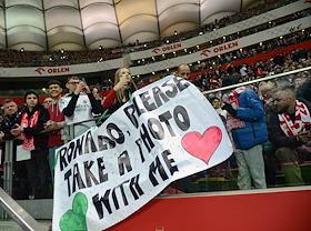 Лига наций УЕФА. Матч по футболу между сборными Польши и Португалии на Национальном стадионе. Болельщики на трибуне во время матча.
