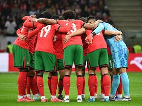 Лига наций УЕФА. Матч по футболу между сборными Польши и Португалии на Национальном стадионе. Игроки сборной Португалии перед началом матча.