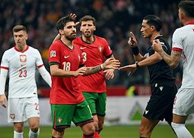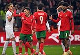 Лига наций УЕФА. Матч по футболу между сборными Польши и Португалии на Национальном стадионе. Игроки сборной Португалии во время матча.