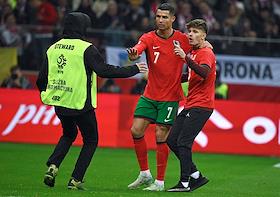 Лига наций УЕФА. Матч по футболу между сборными Польши и Португалии на Национальном стадионе. Игрок сборной Португалии Криштиану Роналду (в центре) во время матча.