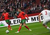 Лига наций УЕФА. Матч по футболу между сборными Польши и Португалии на Национальном стадионе. Игрок сборной Португалии Криштиану Роналду во время матча.