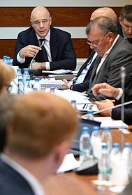 Заседание комитета Государственной думы (ГД) по бюджету и налогам в здании ГД России. Председатель комитета ГД России по бюджету и налогам Андрей Макаров (в центре) и министр финансов России Антон Силуанов (в центре, справа) во время заседания.