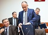 Заседание комитета Государственной думы (ГД) по бюджету и налогам в здании ГД России. Первый заместитель председателя комитета ГД России по бюджету и налогам Глеб Хор (в центре) и член комитета ГД России по бюджету и налогам Валерий Скруг (справа) во время заседания.