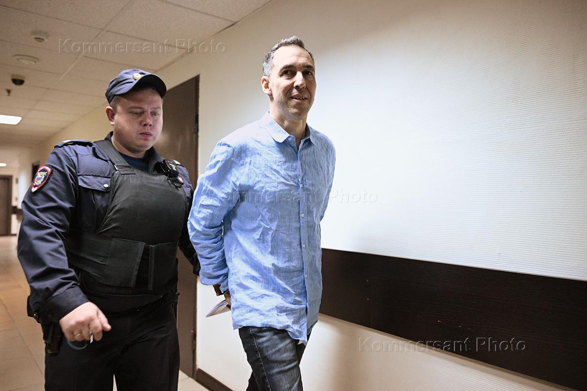 Судебное заседание по делу гражданина Франции Лорана Винатье (признан иноагентом), обвиняемого в уклонении от исполнения законодательства об иностранных агентах, в Замоскворецком районном суде. Гражданин Франции Лоран Винатье (справа) перед началом заседания суда.