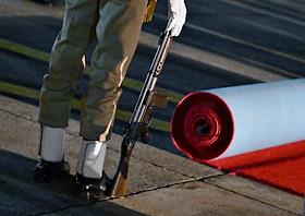 Рабочая поездка председателя правительства России Михаила Мишустина в Пакистан. Жанровая фотография. Подготовка к церемонии встречи на авиабазе ВВС Пакистана "Нур Хан".