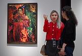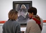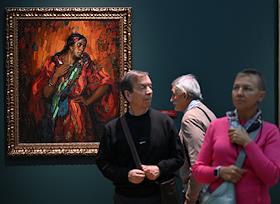 Выставка "Адепты красного. Малявин & Архипов" в Государственной Третьяковской галерее. Посетители на выставке.