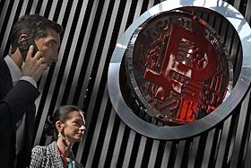 Форум инновационных финансовых технологий Finopolis в университете "Сириус". Жанровая фотография. Модель собаки-робота на форуме.
