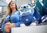 Форум инновационных финансовых технологий Finopolis в университете "Сириус". Жанровая фотография. Собачка с эмблемой Smart technologies.